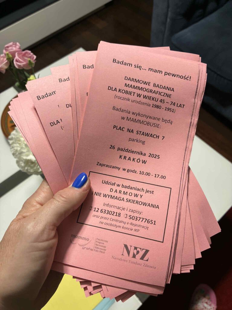 W niedzielę 26 października 2025 mieszkanki Zwierzyńca powyżej 45 roku życia będą mogły skorzystać z bezpłatnej mammografii. Specjalny autobus przyjedzie na Plac na Stawach i tam na parkingu będzie dla Was dostępny od godziny 10:00 do 17:00. Na badanie obowiązują zapisy pod nr tel.